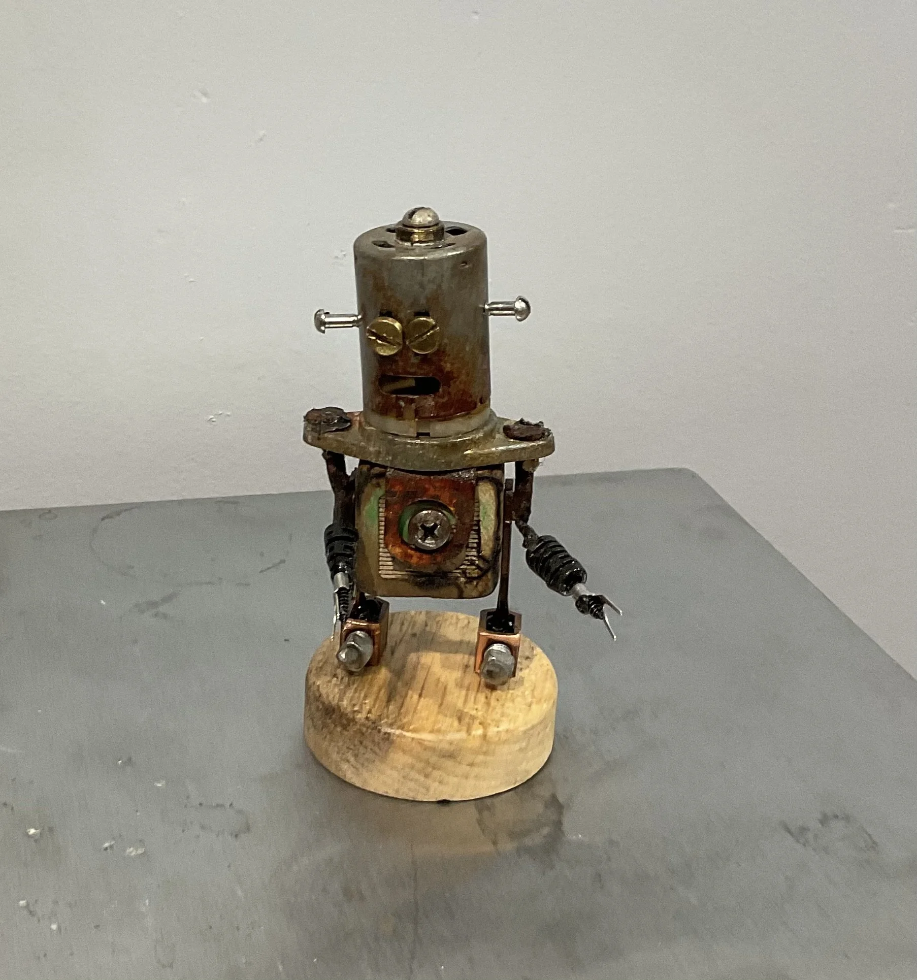 As a child my favorite toys were Tinker toys Lincoln logs and an Erector set. The instructions I felt were merely suggestions. I loved taking things apart and building something new that I imagined in my head. I also liked to lay on the ground and watch the clouds morph into fantastic creatures. I was told to grow up and follow the rules (another suggestion). In past 50 plus years I have built mobile homes, ran a machine shop with my father, then returned to school and became a social worker for child protective and aging and adult services, and finally for the post office. After retiring I moved to Centralia with wife Dorinda. Today I indulge my inner child, repurposing and recycling vintage building materials, scrap wood, and discarded electronics. I guess I never really grew up. My creative goal is to make you smile. ( Oh I still like to look at clouds) Hope you enjoy my work.